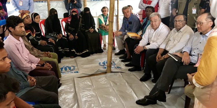 Accompanied by the head of the World Bank, Jim Yong Kim, he called it a mission of solidarity with Rohingya refugees and the communities supporting them. The compassion and generosity of the Bangladeshi people shows the best of humanity and saved many thousands of lives.”