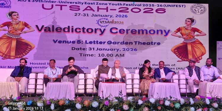 Balasore: As the 39th AIU Inter-University East Zone Youth Festival concluded, the grand valedictory ceremony UTSAH–2026 title was won by Utkal University of Culture, Bhubaneswar. The event was hosted by Fakir Mohan University, marking the successful end of a vibrant celebration of youth talent and cultural unity.
