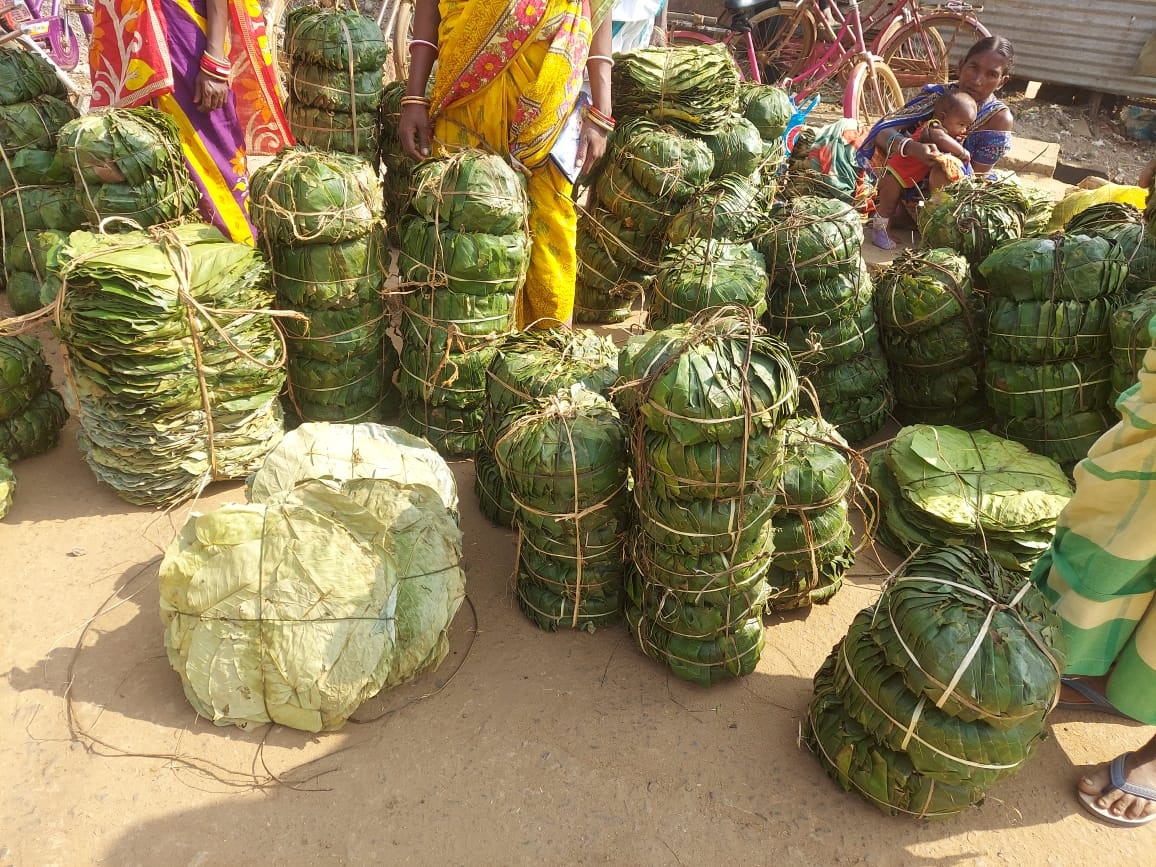 Mostly women make different items like plates and cups from these leaves. They sell them in the market every day. “Earlier, we earned well, but now we are unable to get price for half of our labour invested in leaf collection and sale,” some tribals lamented.