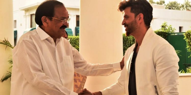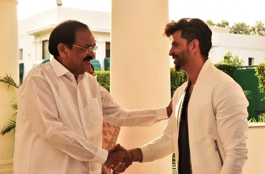 Hrithik Wednesday tweeted a photograph of himself shaking hands with Naidu and said he was honoured to meet the Vice President.