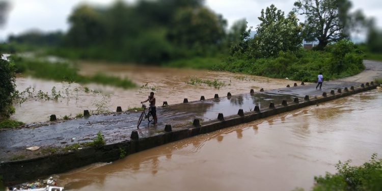 Chhendipada: Come rainy season, villages on either side of Bauri rivulet flowing between Jarpada and Patharpunji road under Chhendipada block in Angul district get separated at the bridge.