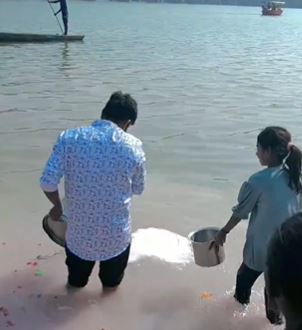 A video is rapidly going viral on social media these days, raising many questions about society. In the video, a man is seen pouring milk into the River Ganga.