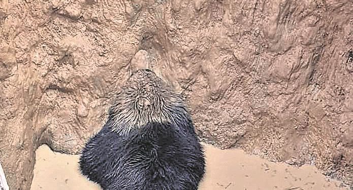 Jharigaon: Forest Department personnel Wednesday rescued a wild bear trapped inside a mud-filled pit at Kodamalli village under Ichhapur Panchayat under Jharigaon block in Nabarangpur district.