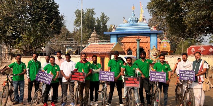 Angul: To turn forest fire prevention and environmental protection into a mass movement, a large-scale awareness cycle rally was flagged off Thursday in front of the Jagannath temple at Purunagarh in Angul town. The initiative is being organised by Sathi Paribar in collaboration with Dharitri and Orissa POST. The five-day rally, scheduled to conclude at Saila Srikhetra February 9, will cover nearly 280km.