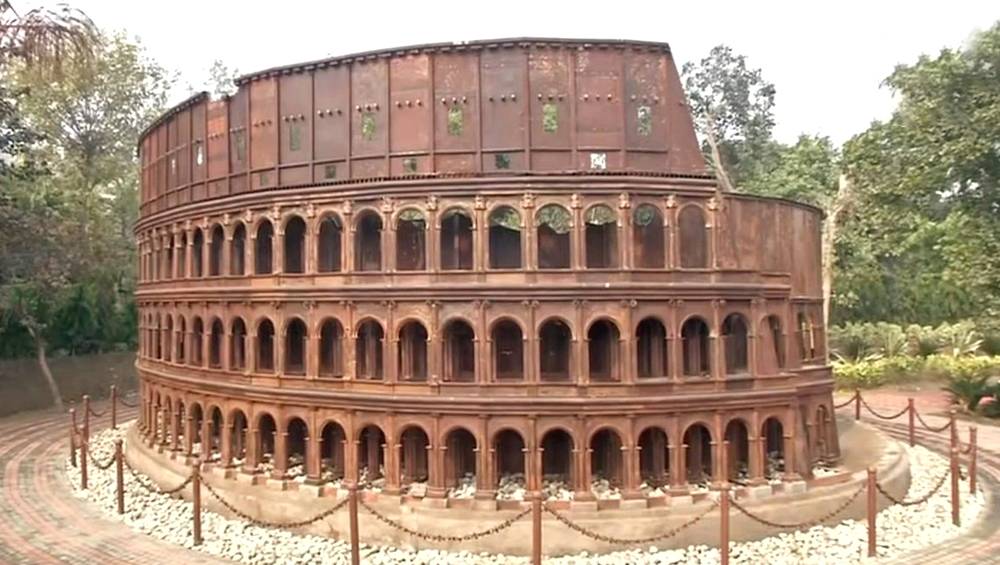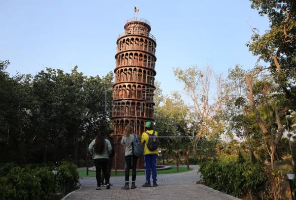 The seven replicas are installed in a landscaped park. Eiffel Tower, the veritable symbol of Paris and France, which is the tallest one among the replicas, and a Taj Mahal fashioned out of industrial and other waste, including used cycle chains, and motifs drawn on it using laser-cut technology, strikingly stand out.