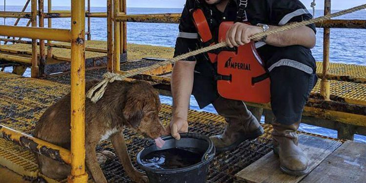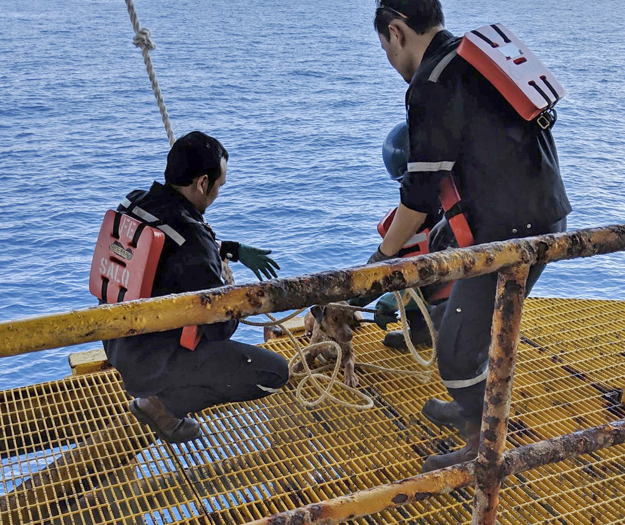 A worker on the rig belonging to Chevron Thailand Exploration and Production, Vitisak Payalaw, said on his Facebook page that they saw the dog swimming toward the platform last Friday. He said they were lucky to spot it because if there had been waves it probably would not have been visible.