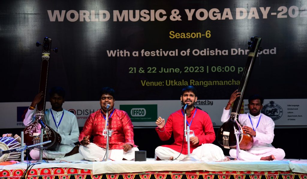 Bhubaneswar: A two-day World Music and Yoga Day celebration, organised by City-based Dhrupad Music Foundation, came to an end here at GKCM Odissi Research Centre here, Thursday. On the second and concluding day, Padma Shri Gundecha Brothers of Madhya Pradesh was conferred with Dhrupad Ratna Jyoti Award-2023 while Arnav Chaghanti (Hyderabad), Shreyaanshi Pahwa(Punjab), and Vini Gupta(MP) received Little Dhrupad Singers Award-2023. Surya Narayan Pani from Odisha was felicitated with Dhrupad Music Foundation Scholarship Award-2023. Luminaries present on the occasion included MLA Soumya Ranjan Pattnaik, Padma Shri Shyamamani Devi, eminent vocalist and Prof (Dr.) Saroj Kumar Das Majumdar, Dept. of Radiation, Oncology, AIIMS-Bhubaneswar.