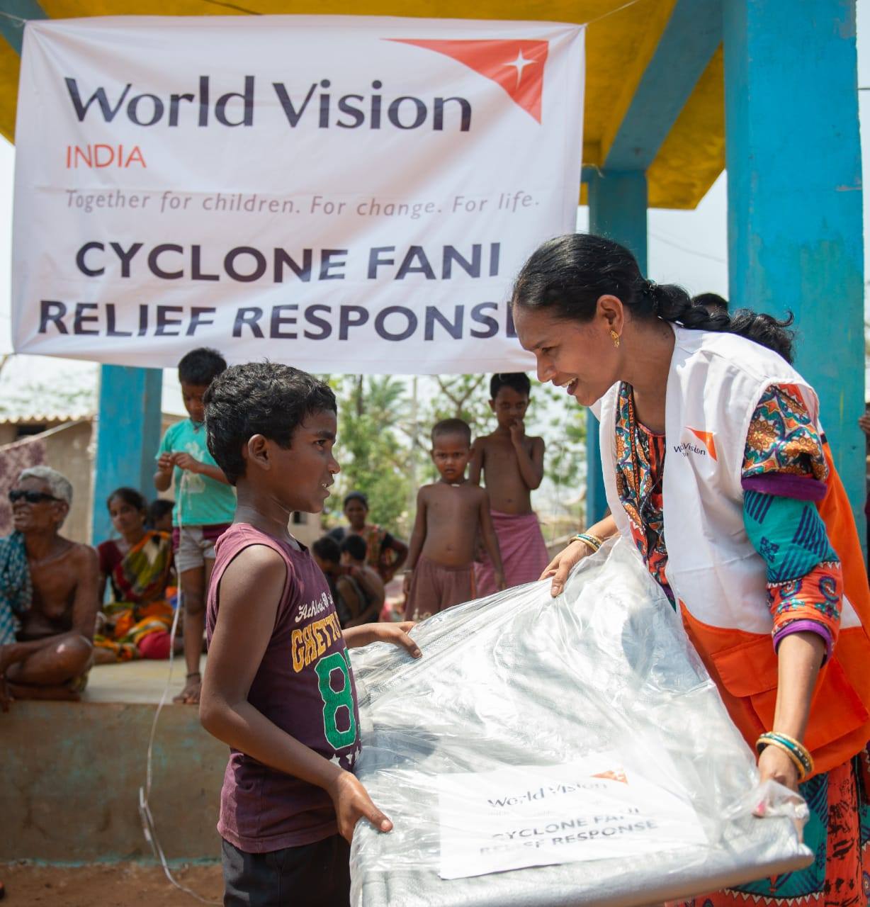 World Vision India’s emergency response team have identified food, clean drinking water, medicines, hygiene kits, solar lamps, mosquito nets, and temporary shelters as immediate needs for the affected population. World Vision India has begun distributing shelter material (tarpaulin sheets) to 3,100 families and emergency relief kits to 2,000 families in cyclone affected Bhubaneshwar.