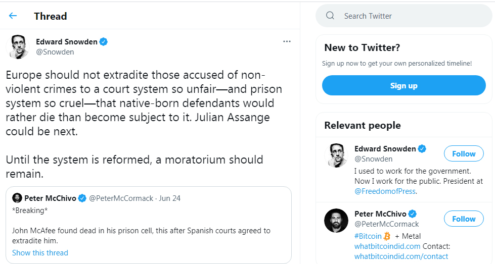 Washington: US whistleblower Edward Snowden has something to say for Wikileaks founder Julian Assange. Edward Snowden made the comments after antivirus mogul John McAfee died by apparent suicide in a Barcelona prison. McAfee’s drastic step came after he was told that he will be extradited to the United States on tax evasion charges. Snowden, the former NSA consultant and data privacy advocate, has tweeted that Julian Assange ‘could be next’.