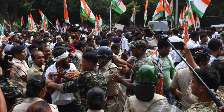 Bhubaneswar: Activists of the Congress’ youth wing Thursday clashed with security personnel here during a march towards Chief Minister Mohan Charan Majhi’s residence to highlight “vote theft by the BJP government in the state and at the Centre”.